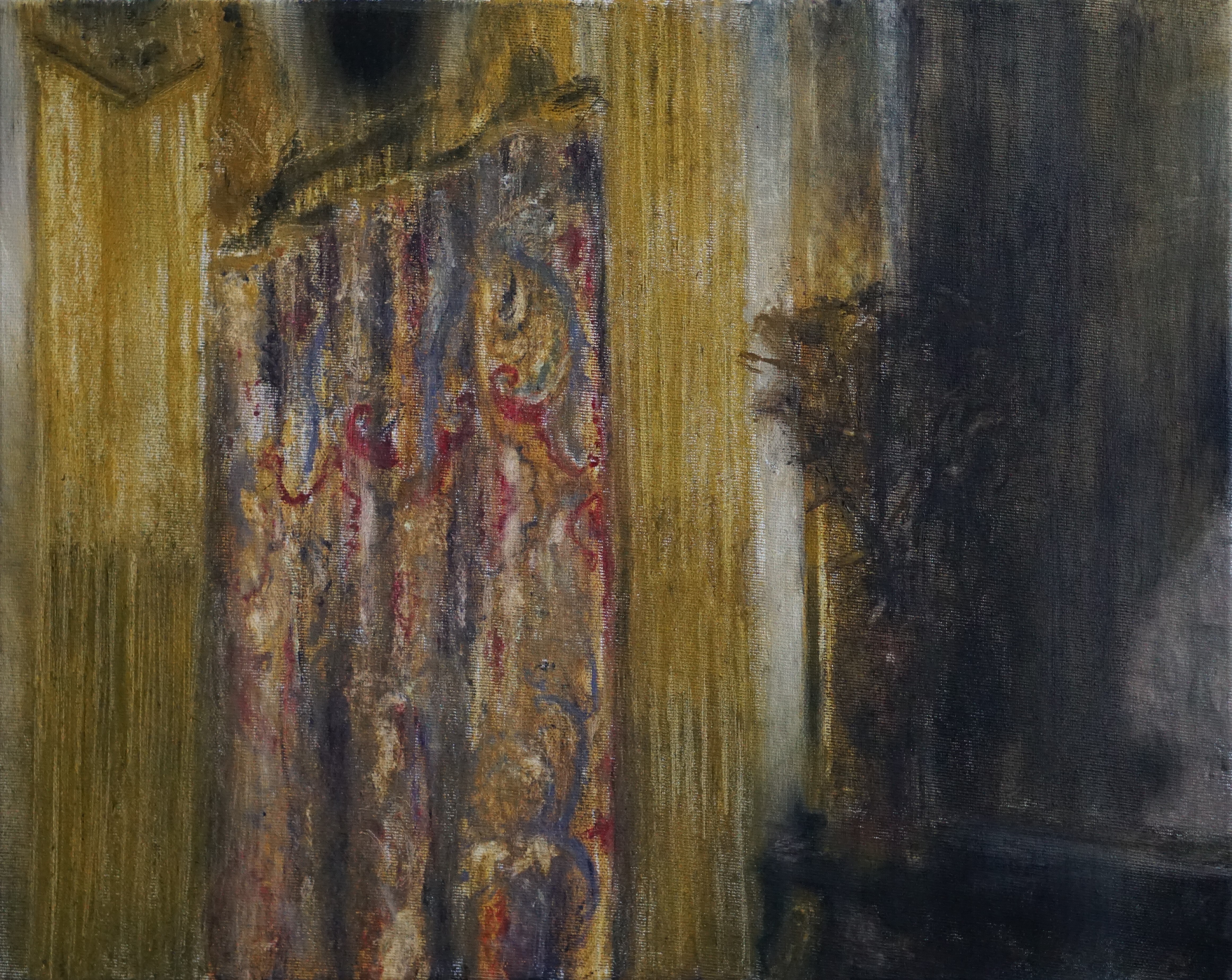 A “perihelion” is the closest point in a planet’s orbit that it ever comes in proximity to a star, and it’s this lonely, yearning arch that Łukasz Stokłosa traces in his work. His dimly lit paintings of dusty royal apartments, abandoned palace grounds, and faded icons capture the faint glow of a majesty that has long since vanished from this Earth. To return to Versailles today is to be confronted with both the Sun King’s grandeur and his absence. The Hall of Mirrors and the gardens by Le Nôtre remain timeless as ever, but they have also outlasted their primary purpose: they no longer exalt but merely exist, commanding rapture without anyone to heed its call.