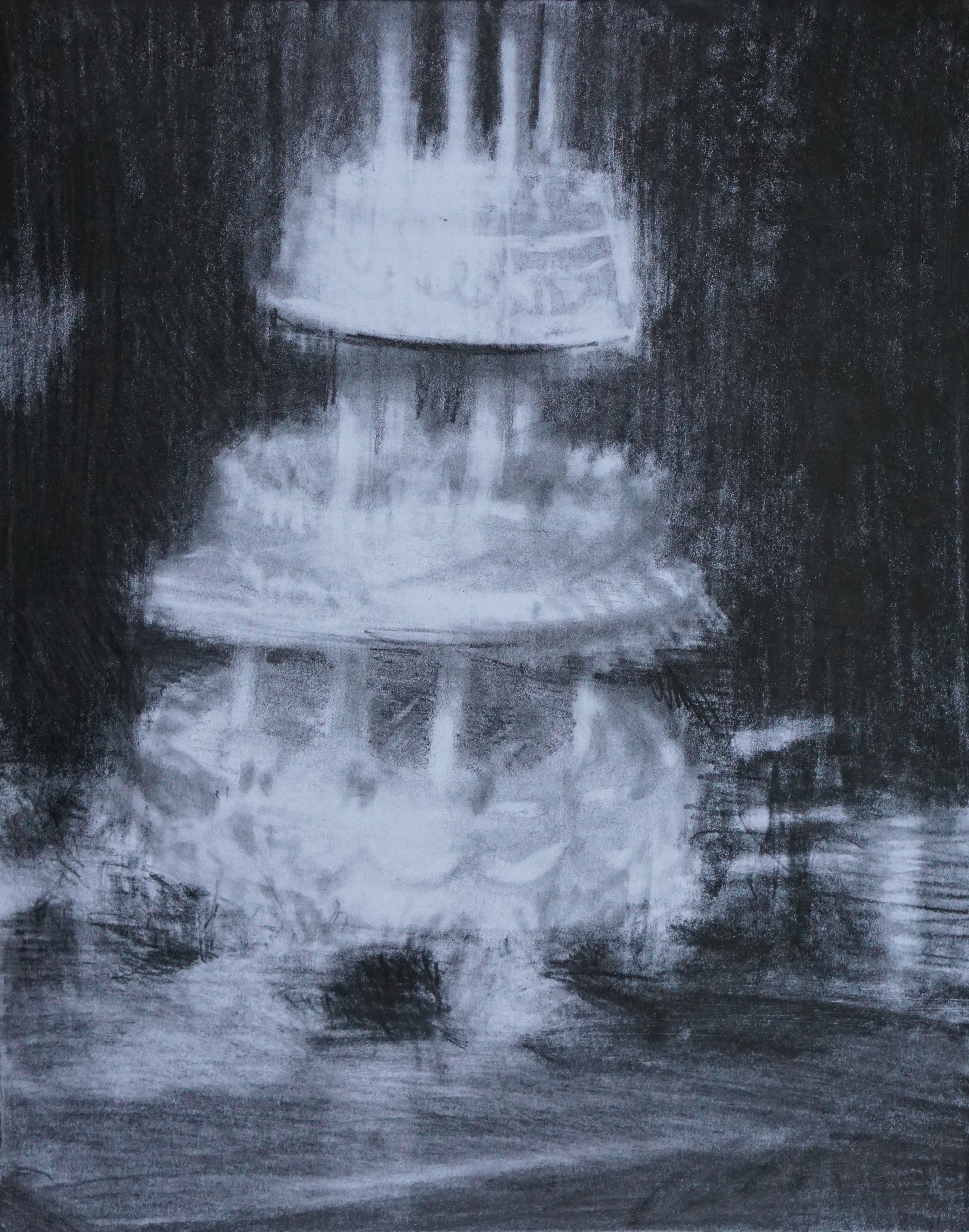 Underlying every aspect of the pomp and circumstance of life at Versailles was a profound sense of purpose. The most pointless day-to-day tasks demanded the most elaborate etiquette, with every fine detail imbued with subtle meaning. These were rituals that not only drew oneself closer to the Dauphin but also the ideal that he embodied. But what ideal has been lost? And can it ever be recreated? Stokłosa isn’t fussy with his approach to art history and locates as much latent meaning in grand halls as he does among porn stars and pop culture. The doomed wedding cake from Blake and Krystle’s short-lived marriage on Dynasty sits side-by-side with portraits of Jennifer Jason Leigh and Ben Chaplin from the 1997 Henry James adaptation, Washington Square. Elsewhere, the bodies of adult film actors from old VHS tapes are depicted as fetish objects in both senses, hornily rendered vessels for longing. In moments like these, Stokłosa collapses the lofty and exalted with the campy and immediate, granting his work a halo of luxury that’s both funny and also a rejoinder: it’s impossible to recreate the glory of the past, but we will come back a great distance to the extraordinary in due course.